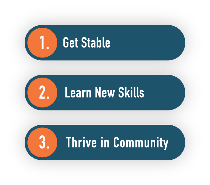 We provide men, women, and children with safe, high-quality temporary housing and a clear path to stable, permanent, and affordable homes. This helps them regain stability and thrive.