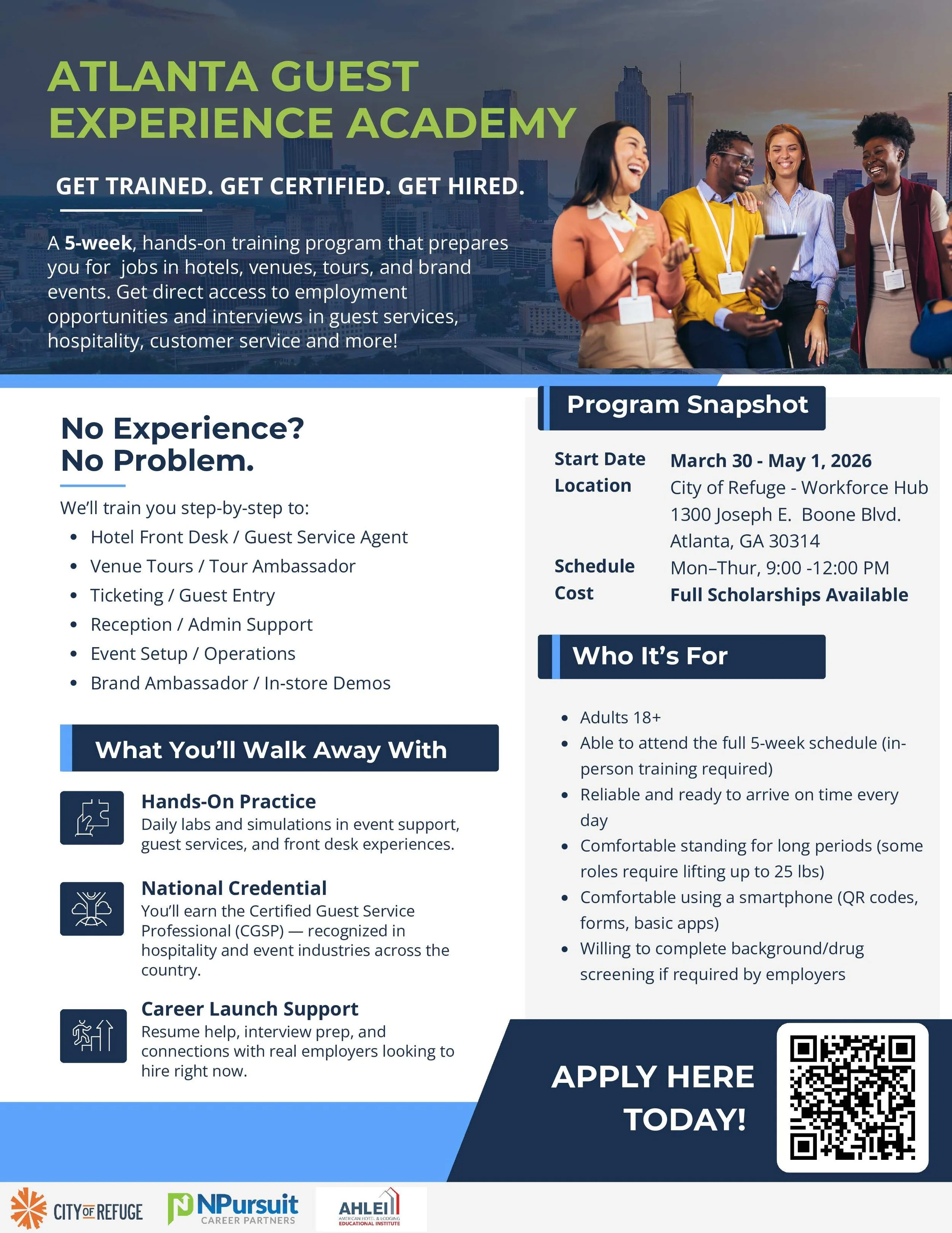 Join our hands-on guest experience training program, where you will learn essential customer service skills and gain real-world experience in hospitality, events, and guest services. This 5-week program prepares you for roles in hotels, venues, tours, and brand experiences, with direct access to job opportunities and interviews. Tuition-free with limited spots available.