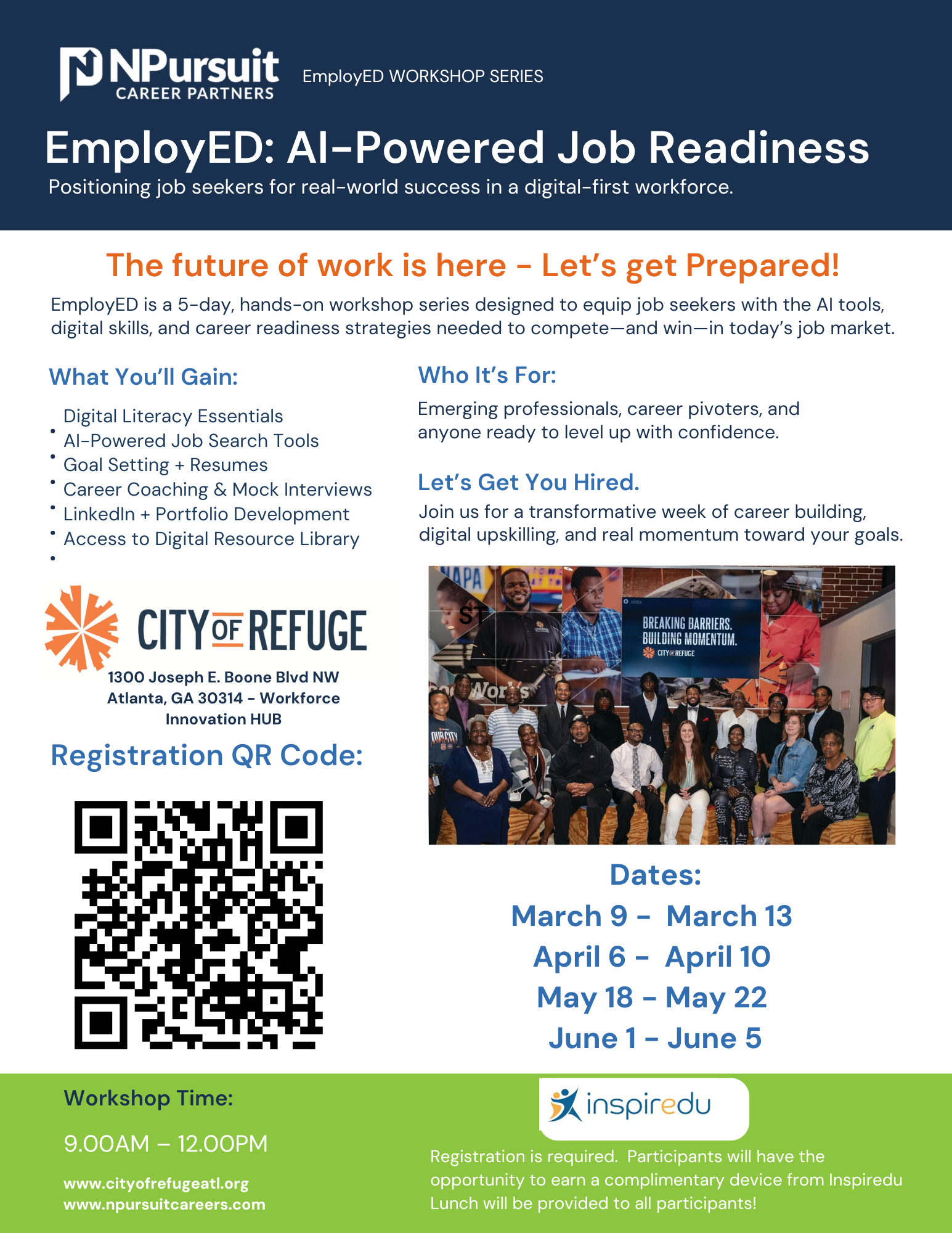 EmployED is a hands-on workshop series designed to equip job seekers with the Al tools, digital skills, and career readiness strategies needed to compete-and win—in today's job market.